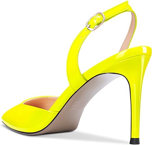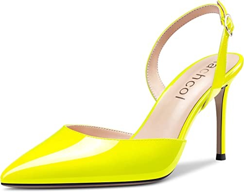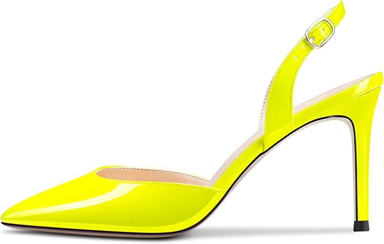Aachcol Women Stiletto Mid High Heel Pumps Backstrap Ankle Strap Slingback Pointed Toe Dress Shoes Office Party Wedding Patent 3 Inch