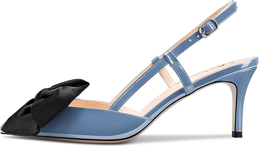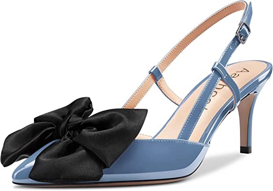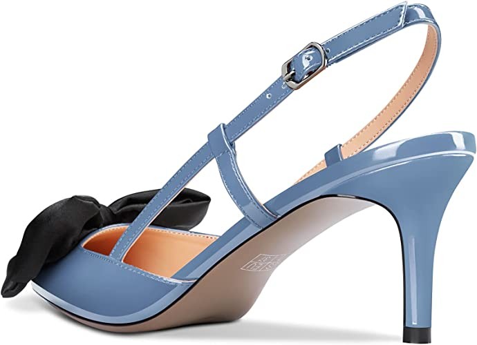 Aachcol Women Stiletto Mid Low Kitten Heel Pumps Ankle Strap Slingback Pointed Toe Dress Shoes Office Party Wedding Patent 2.5 Inch