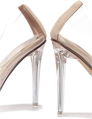 Cape Robbin Glass Doll Sheer Stiletto Ladies Slip-On Sexy Toe, Beige, 7.5