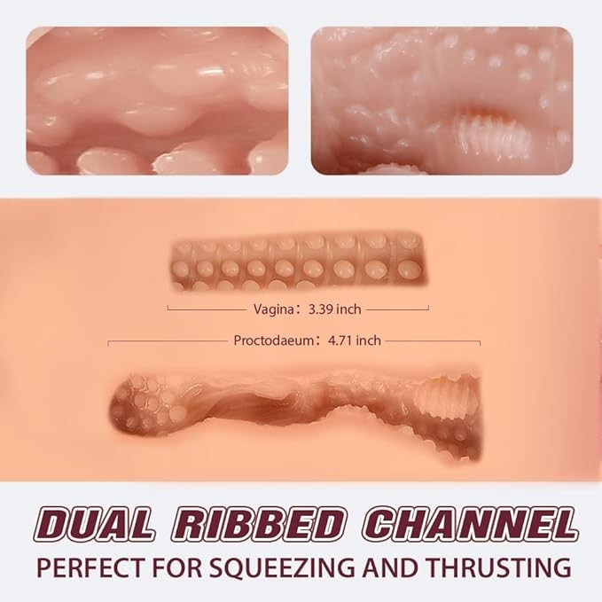 • LIFELIKE VAGINA AND ANUS - This male masturbator doll equipped with vaginal and anal closed-end tunnels. There are many particles inside the vaginal passage to stimulate your penis; There are particles and threads inside the anal channel, which is more compact and has stronger suction. The sucking and vibration functions are mainly in the vagina, and the sucking and vibration amplitude of the anus will be relatively weak