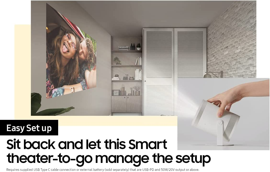 • EXTERNAL BATTERY COMPATIBLE: Now the big screen experience is as mobile as you are; Just grab The Freestyle with an external battery pack and go; With no outlet needed, you’re free to watch your favorite shows, play games or whatever you want, anywhere you want—indoors or outdoors